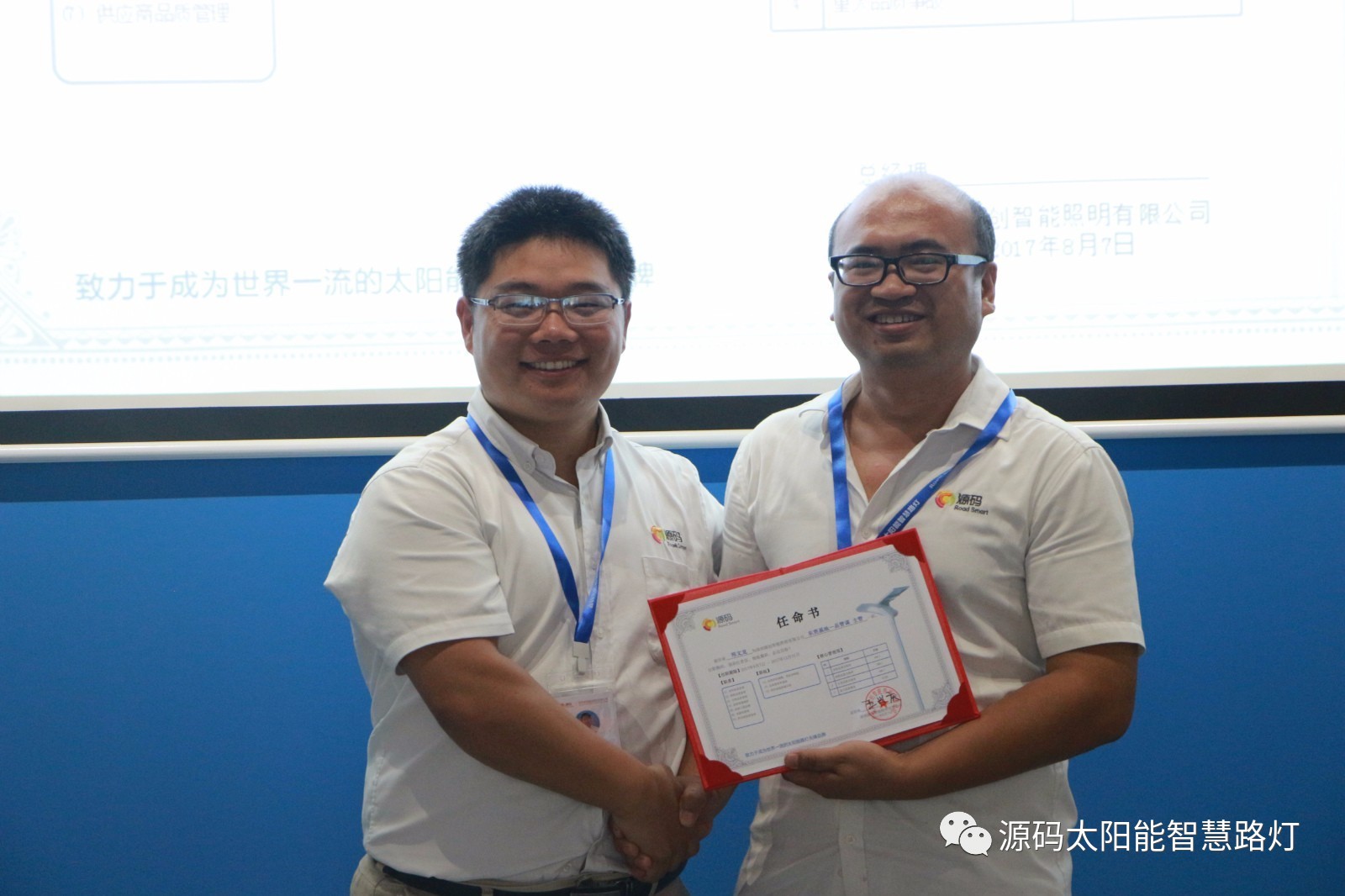其次,由源碼人事主管劉柳女士宣讀任命書,源碼董事長王興慶先生為被任命人頒發(fā)任命書,此次大會(huì)共計(jì)任命干部十一名,任期皆為2017年8月7日至2017年12月31日。