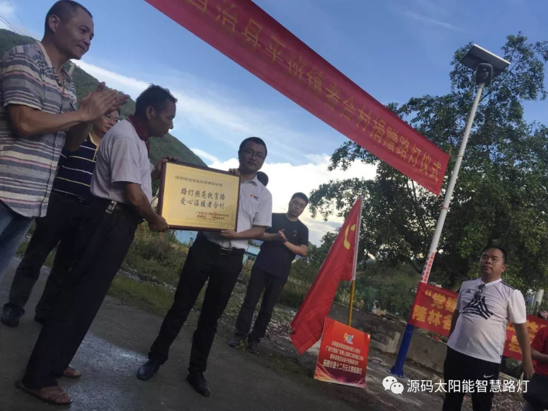 8月31日下午,源碼太陽能路燈聯(lián)合廣西電視臺向百色隆林平班鎮(zhèn)者合村捐贈太陽能路燈。此次捐贈的路燈,不僅亮化了村莊,更照亮了鄉(xiāng)親們的幸福生活。對者合村進一步提高村級基礎(chǔ)設(shè)施水平、保障農(nóng)村群眾夜晚出行安全,保障和改善民生將發(fā)揮積極作用。